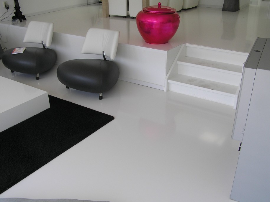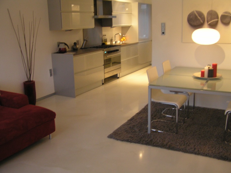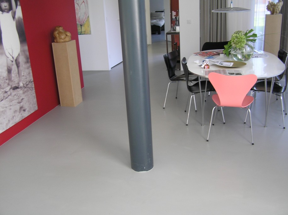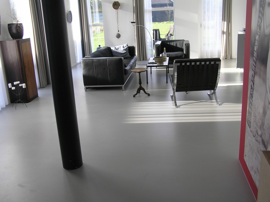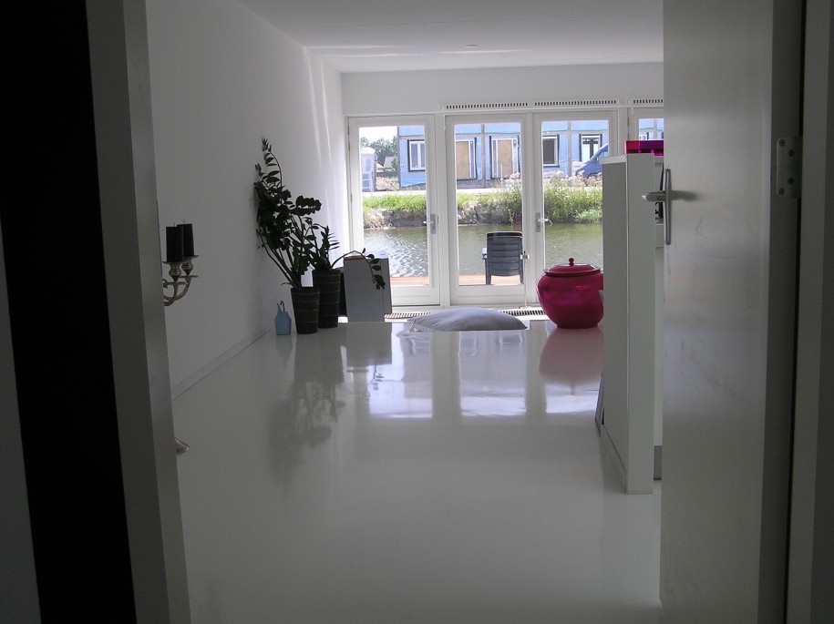 Woonkamer, keuken. Tot in de slaapkamer en badkamer aan toe. Alles één geheel. Een strakke, naadloze basis. Maak daarop met meubels en accessoires een prachtig interieur.